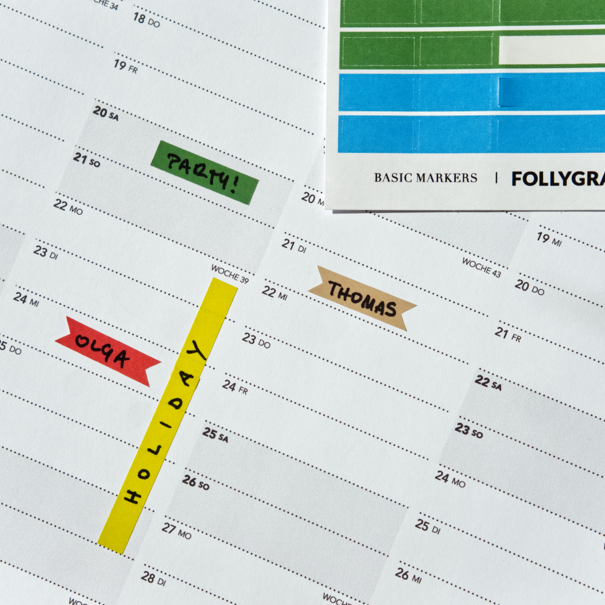 Zestaw 61 naklejek do kalendarzy / planerów:- 13 prostokątów „wstążka”  6x23mm